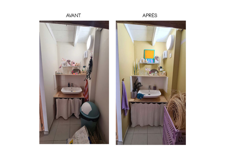 La coaching "visio + shopping list" concernait ici l'espace sanitaire d'un atelier boutique basé dans le Vaucluse. Coralie m'a contacter pour l'aider a redonner de la personnalité à cet espace délaissé et peu accueillant. Vous pouvez l'intégralité du projet juste ici.